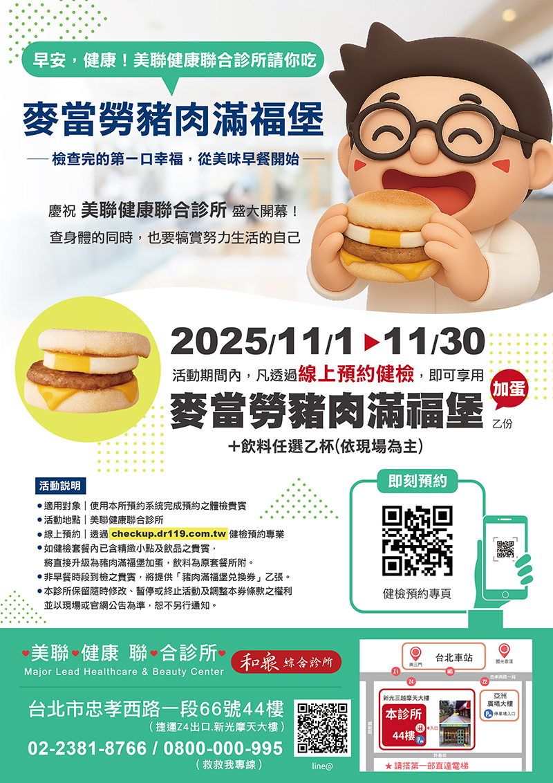 ・如健檢套餐含精緻小點,將升級為滿福堡組合。